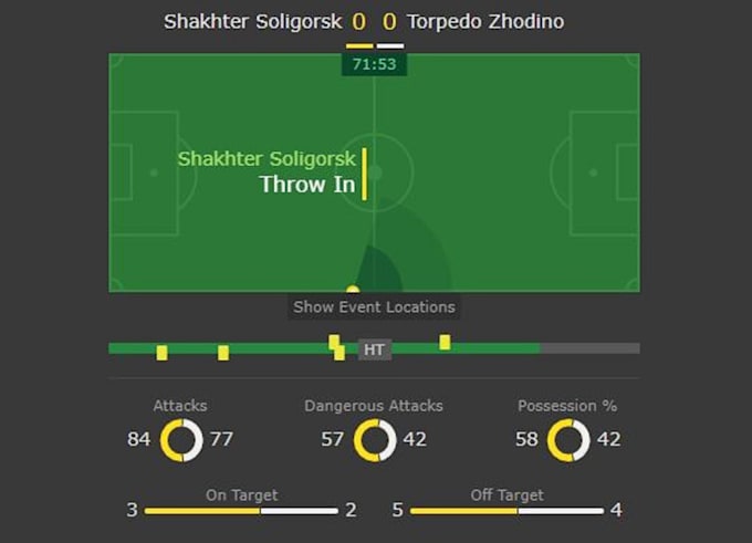 live statistics (attacks, dangerous attacks, possessions%, on target, off target.